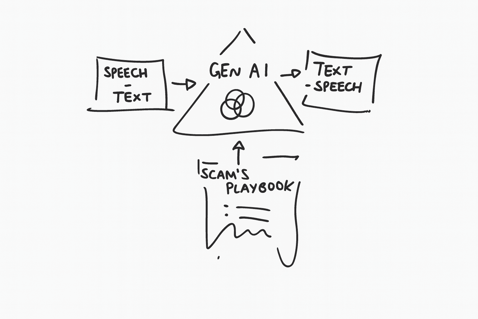 Both Gen AI and traditional learning approaches were worked up into rough designs. Quick testing showed Gen AI would win on efficient use of Agent time and quality. AI prompting based on my Behaviour-science infused Scams 'playbook' was sketched out.